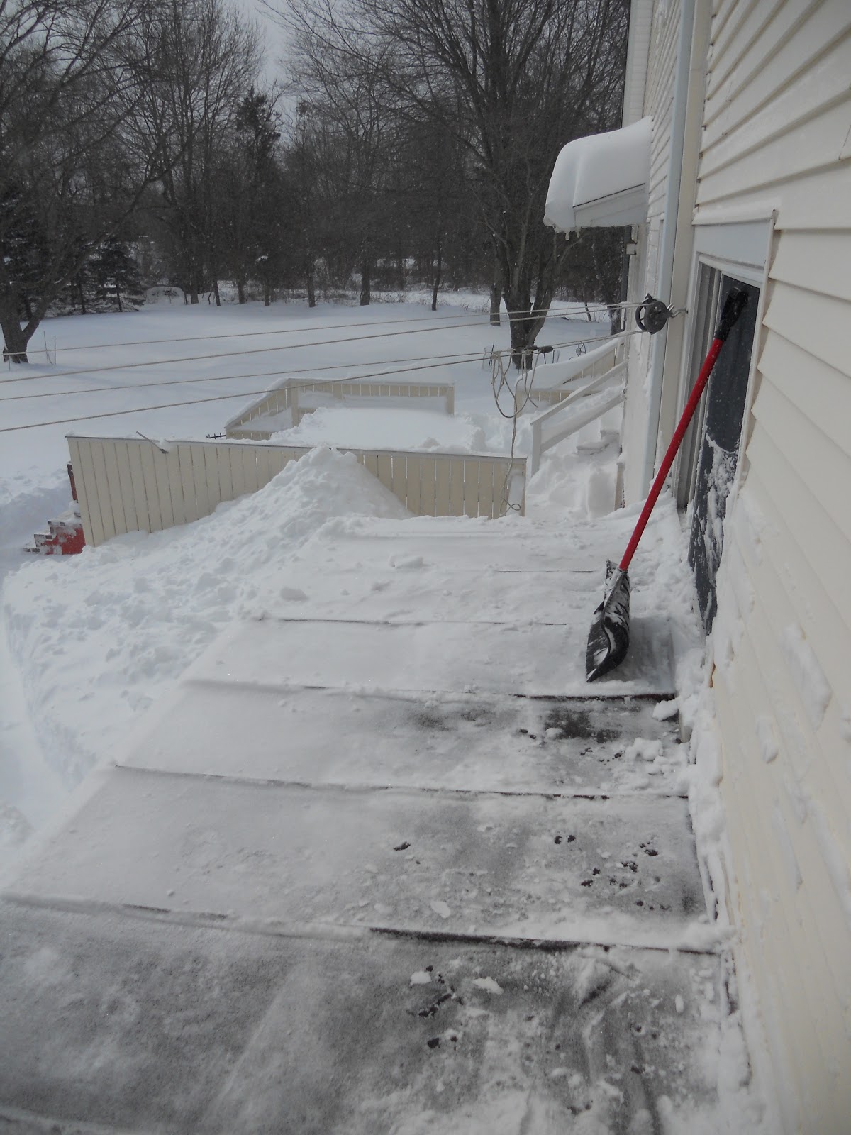 Friday night I had shoveled a path on the lower deck to the sliding door