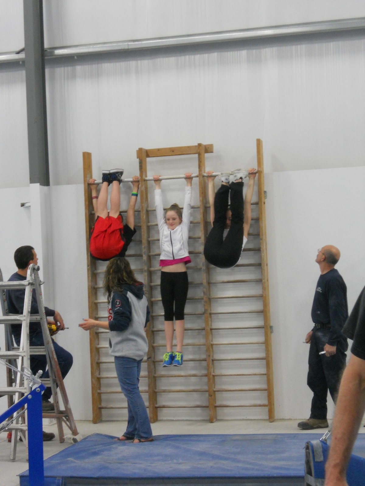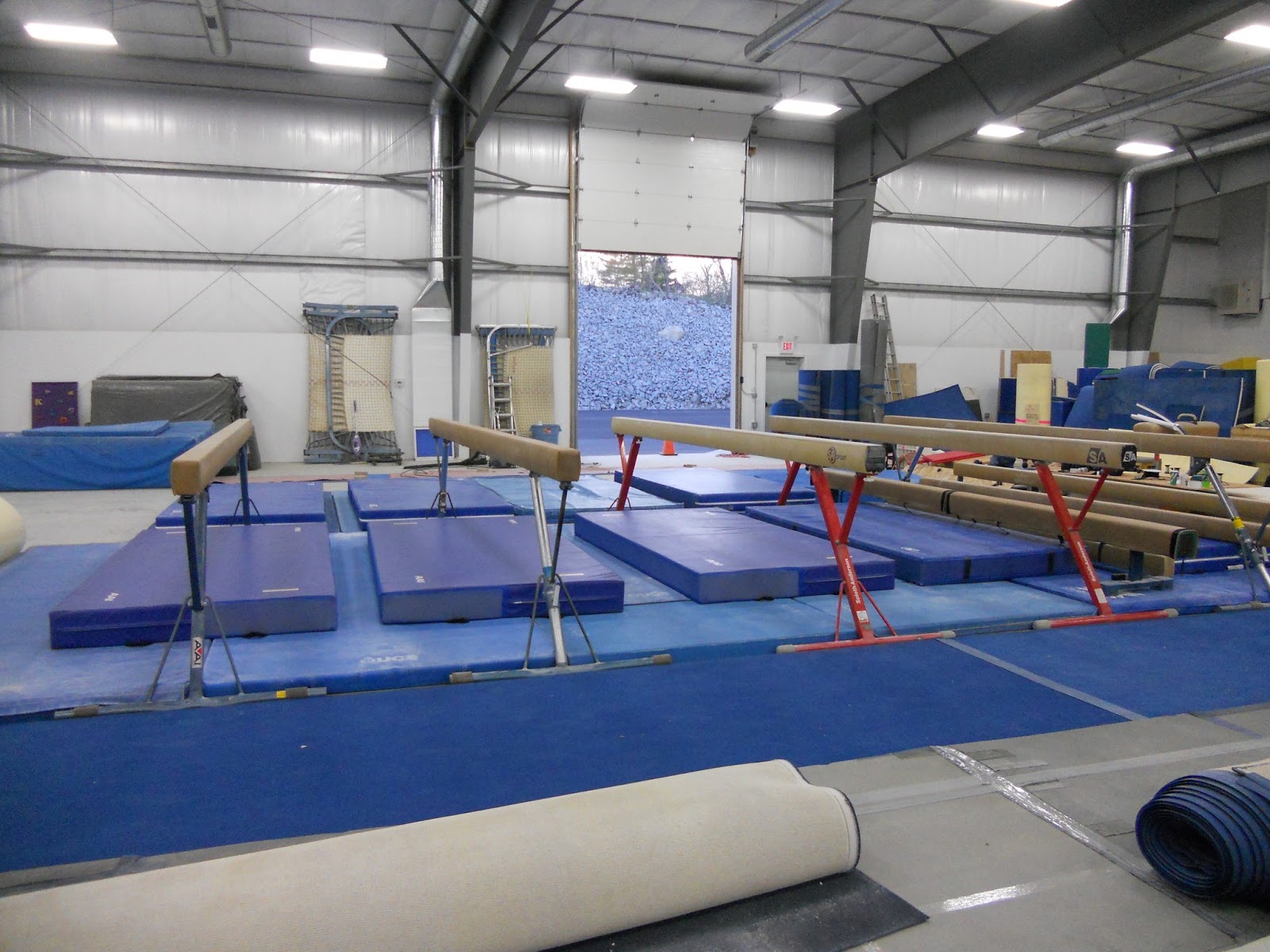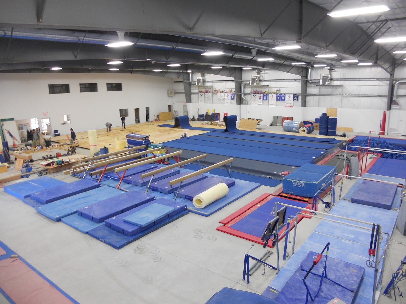 And what happens when a couple antsy coaches are sitting around in an un-assembled gym? We move out the contractors and set up beam!!
