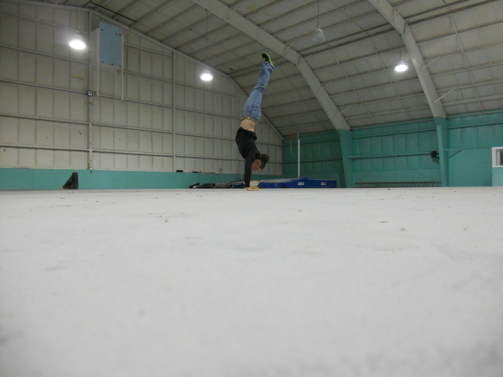 7:30 I was back at the old gym, and it was empty!! It was a little strange, I can remember it looking that way 5 years ago before we moved in!! I felt that it was necessary to do one last handstand . . .