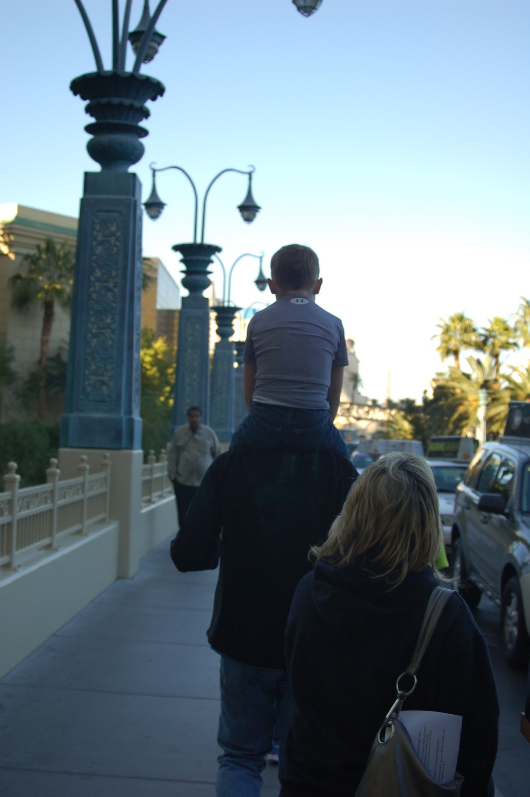 The game got over just in time for us to head over to the Excalibur for the Tournament of Kings dinner. It was a medieval time dinner theater show where you eat with your fingers and there's jousting and sword fighting. I wasn't allowed to take pictures but it was a great time, the boys enjoyed being able to shout and cheer, and the fact that we were in the dragon's cheering section made it fun!!