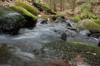 I was taking pictures when I happened to notice this orange sticker sort of hidden under one of the rocks. I thought that was a little odd so I got a little closer to investigate to discover that the sticker was on a green metal box with a label that said 'small arms' on it. I had seen old ammo boxes like it before but thought it very odd that it was out in the woods . . .