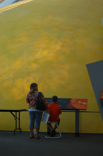 We got to see another 3-D show about space junk, there was a machine where you could make craters (I think it almost scared the pants off Kev the first time he did it), there were moon rocks, and simulators where you could land a ship on the moon :)