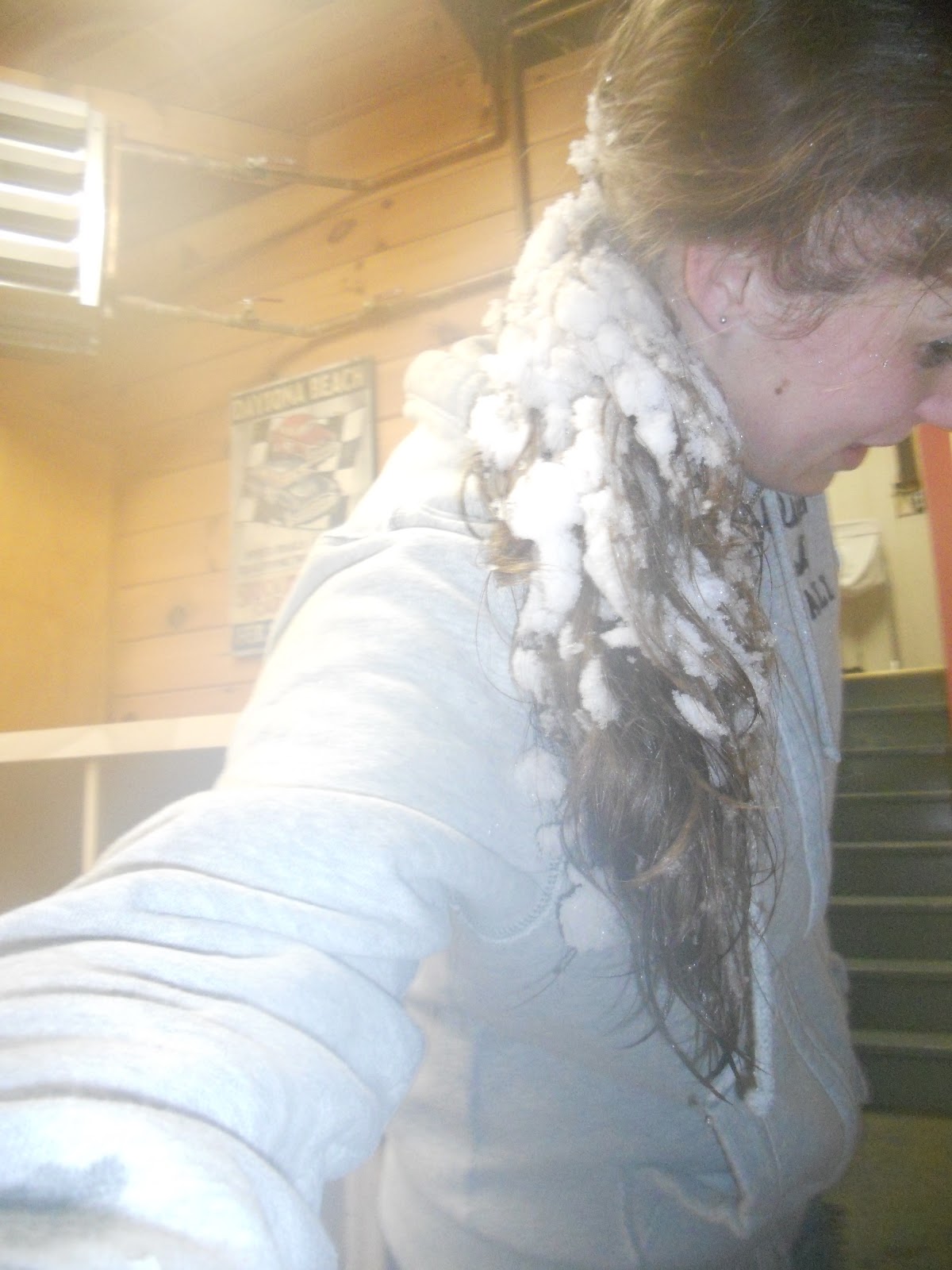 I looked like I had a snowball in my hair when I came in
