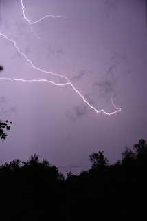 So, in case you didn't know, I like taking pictures! I know you're surprised. I like shooting a lot of different things, animals, kids, and sports are my favorite. Shooting candid, it's what I prefer and what I feel I'm better at anyway. One shot I've been wanting to get is a cool lightning shot. Now I realize this is a shot I'm probably always going to want to matter how many times I get to shoot storms because I'm the one that will always be thinking 'But this storm is different! The lightning will be different! What can I get this time?!' So, yes the weather has been a little miserable but with all the humidity it's been producing some storms. I'm sure there's plenty of literature with tips and aperture and shutter settings that will tell me exactly what to do to get "that" picture, but honestly I've been enjoying myself experimenting a little with different settings, and been getting some cool results. Like this shot that I got a couple weeks ago ^. My first decent shot of lightning, but I wanted more ...